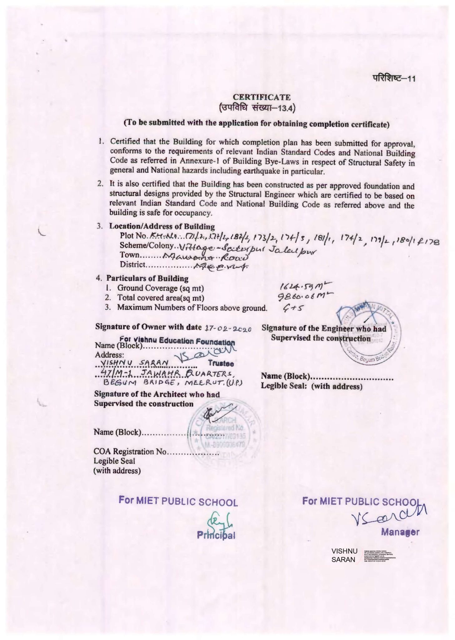 | 4 | COMPLETE ADDRESS WITH PIN CODE | 6TH MILESTONE, MAWANA ROAD, MEERUT UP 250001 |